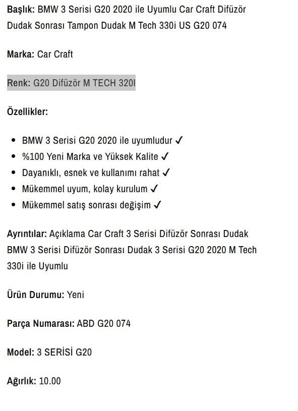 Bmw 3 Serisi G20/28 İle Uyumlu Arka Difüzör 2020